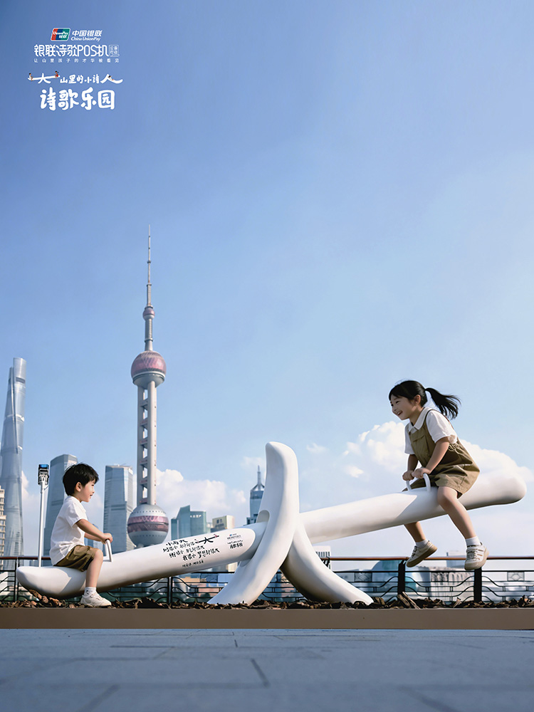 中国银联诗歌POS机公益行动进入第七年,2025年,中国银联在上海北外滩国客中心用山区儿童诗歌中的文字盖了一座乐园,这也是第一座由汉字搭成的东方乐园!欢迎大家来看看小诗人们的文字,来乐园一游~
