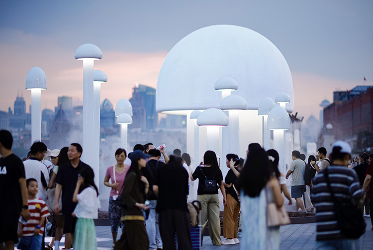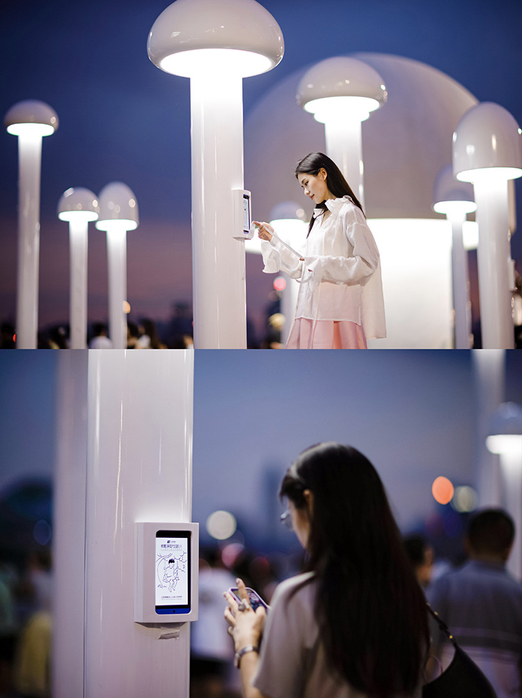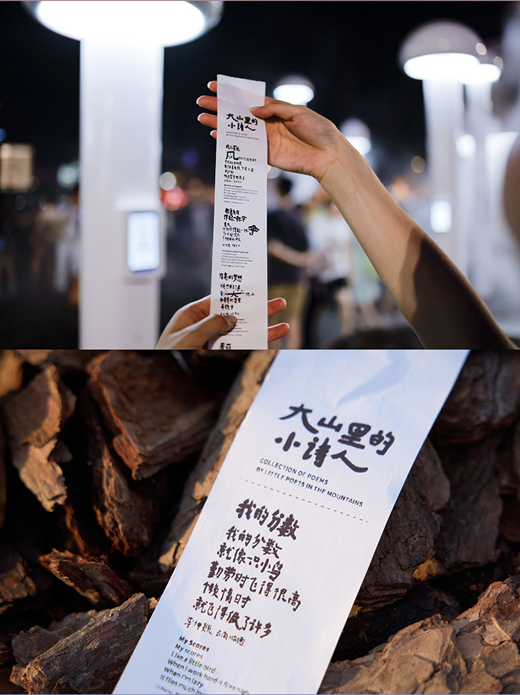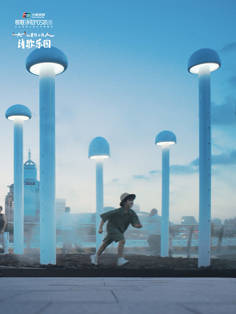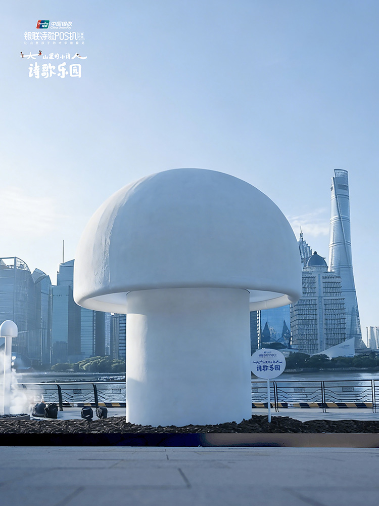 我们还把小诗人诗里常见的“蘑菇”“种”在了诗歌乐园里。夜幕降临,一朵两层楼高的大磨菇开始发光,如同黄浦江边的新地标,与东方明珠塔隔岸相望,大山与大城在这一刻交融,不分彼此。 7年的持之以恒,银联「诗歌POS机」公益行动让越来越多的人看见了山里孩子的才华。那些曾经孤单的山村孩子,诗句中渐渐绽放出自信与欢愉,他们不再只是等待外界肯定的孩子,而是成长为自己精神世界的建造者。