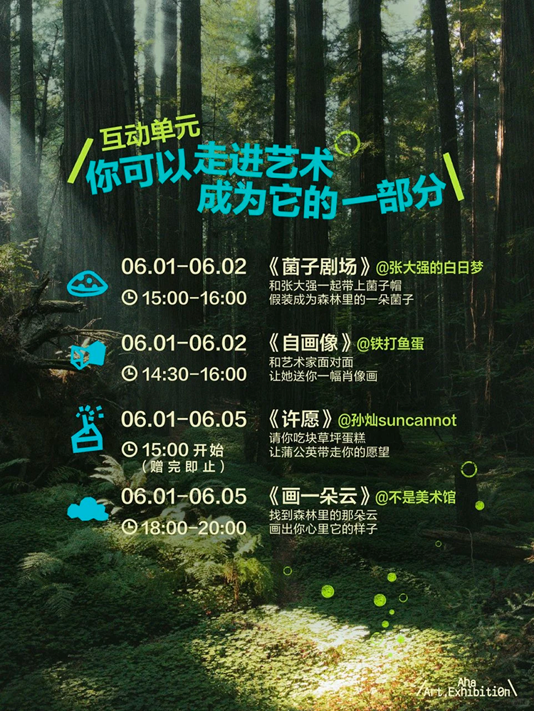 我们和艺术薯一起,联合37位小红书青年艺术家把作品搬到了慢人节的森林里🌳